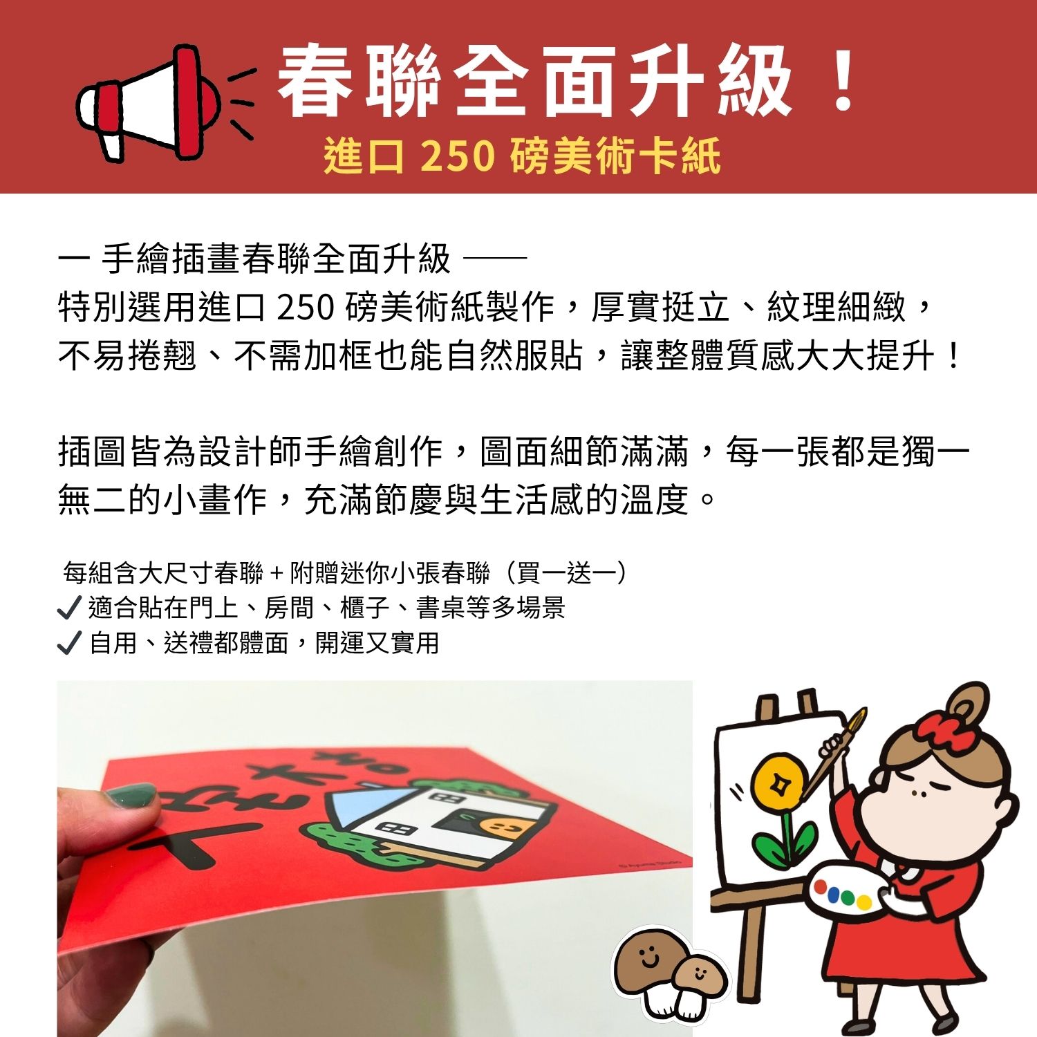 🌟 插畫春聯全面升級!用紙提升為進口 250 磅美術卡紙!