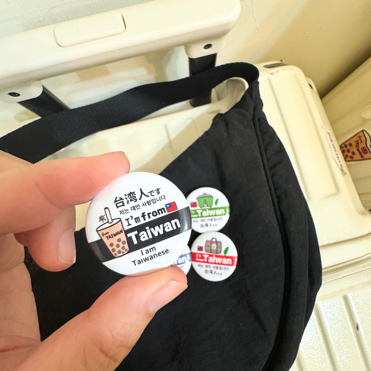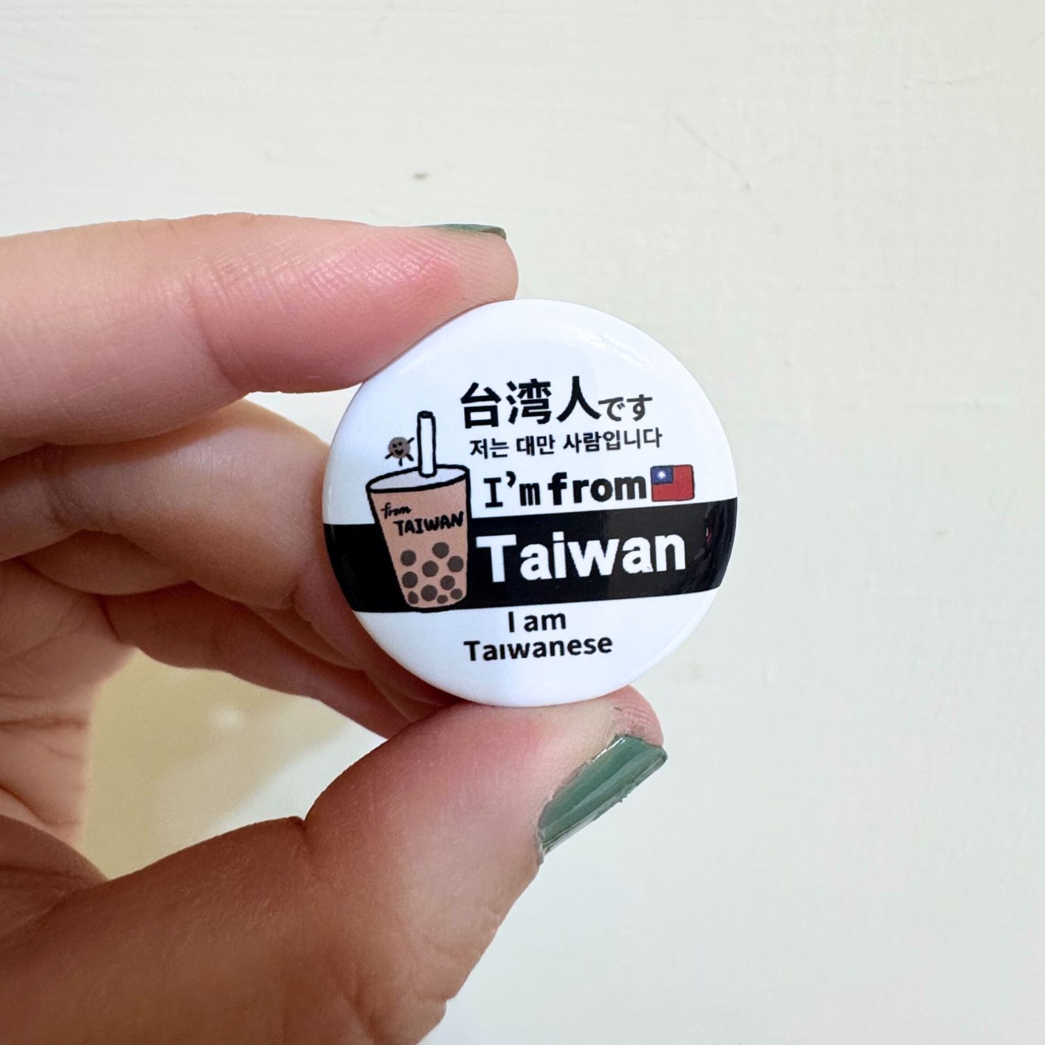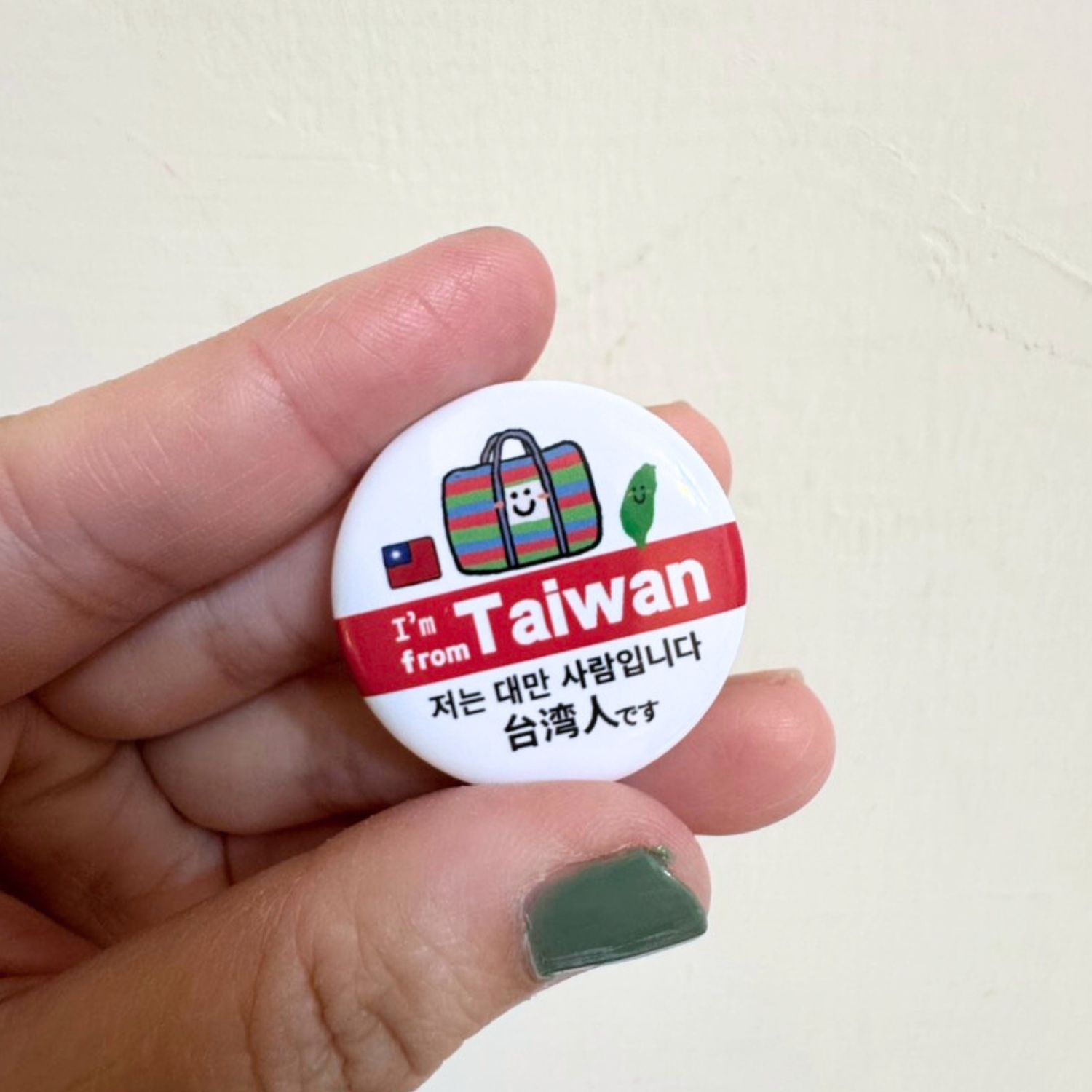 【賣場滿100(不含運)才出貨】胸章皆買1送1同款台灣人防水貼紙(行李箱適用)【亮面小胸章】尺寸:直徑3.2cm設計:Ayuma手繪插畫台灣設計 / 台灣製造