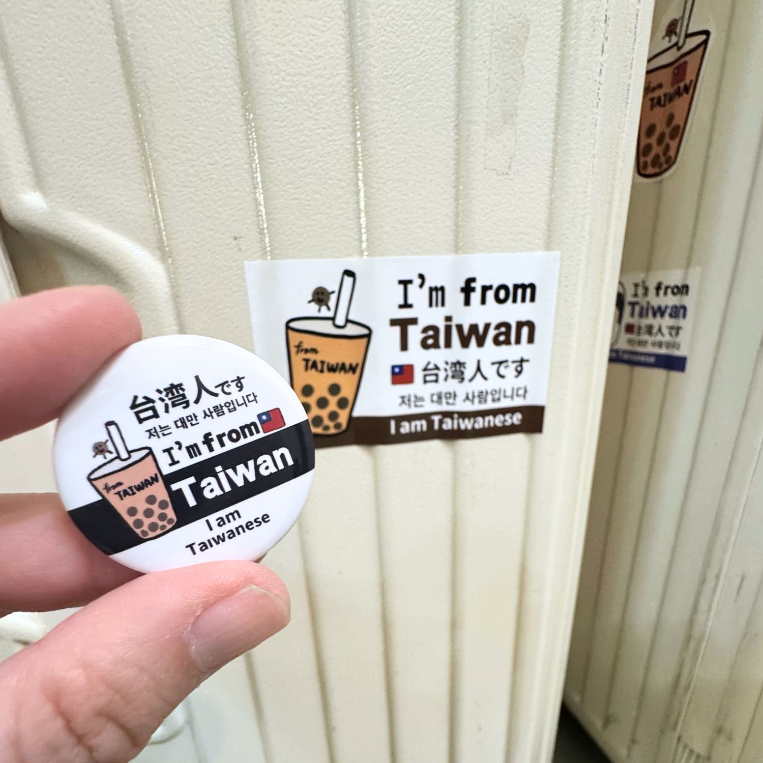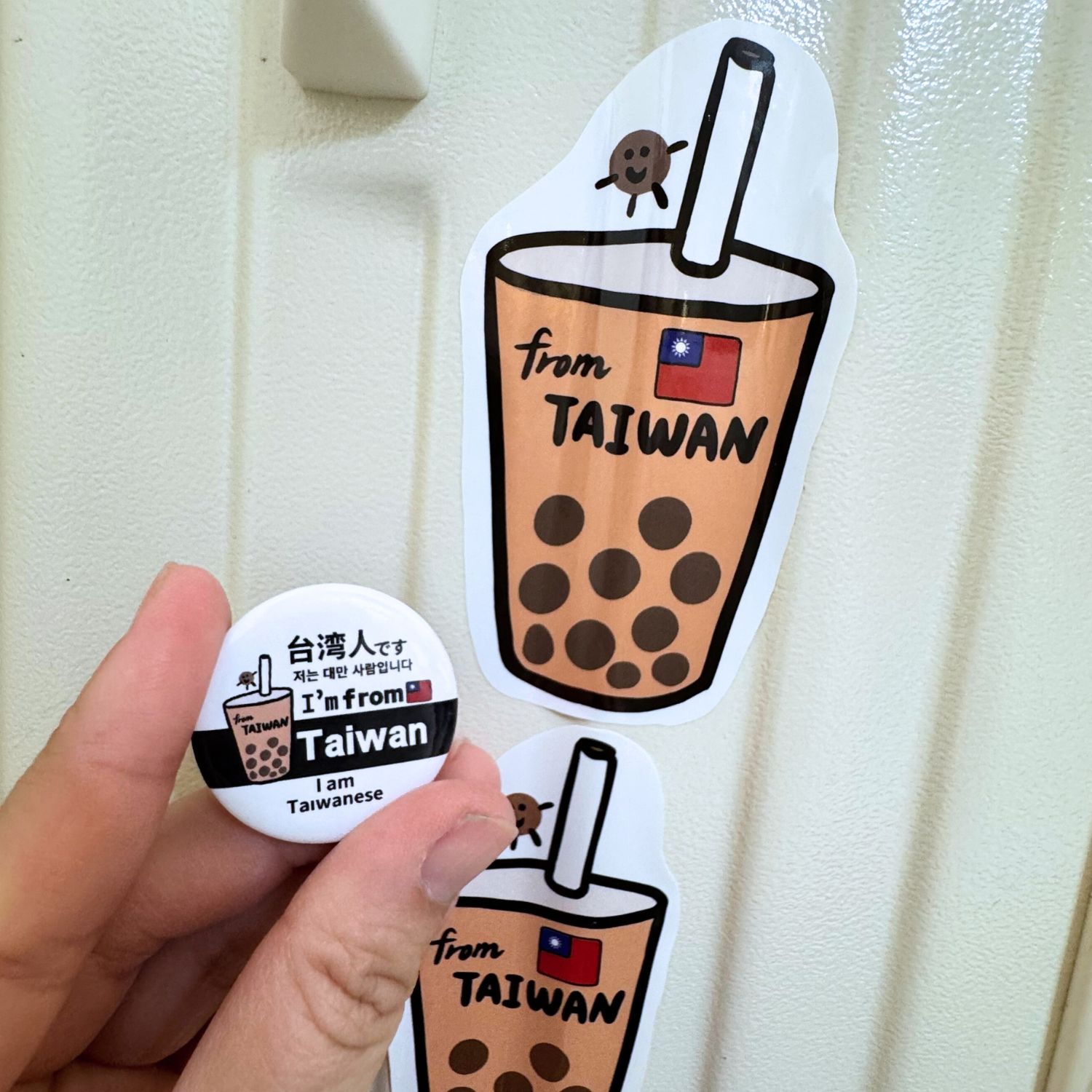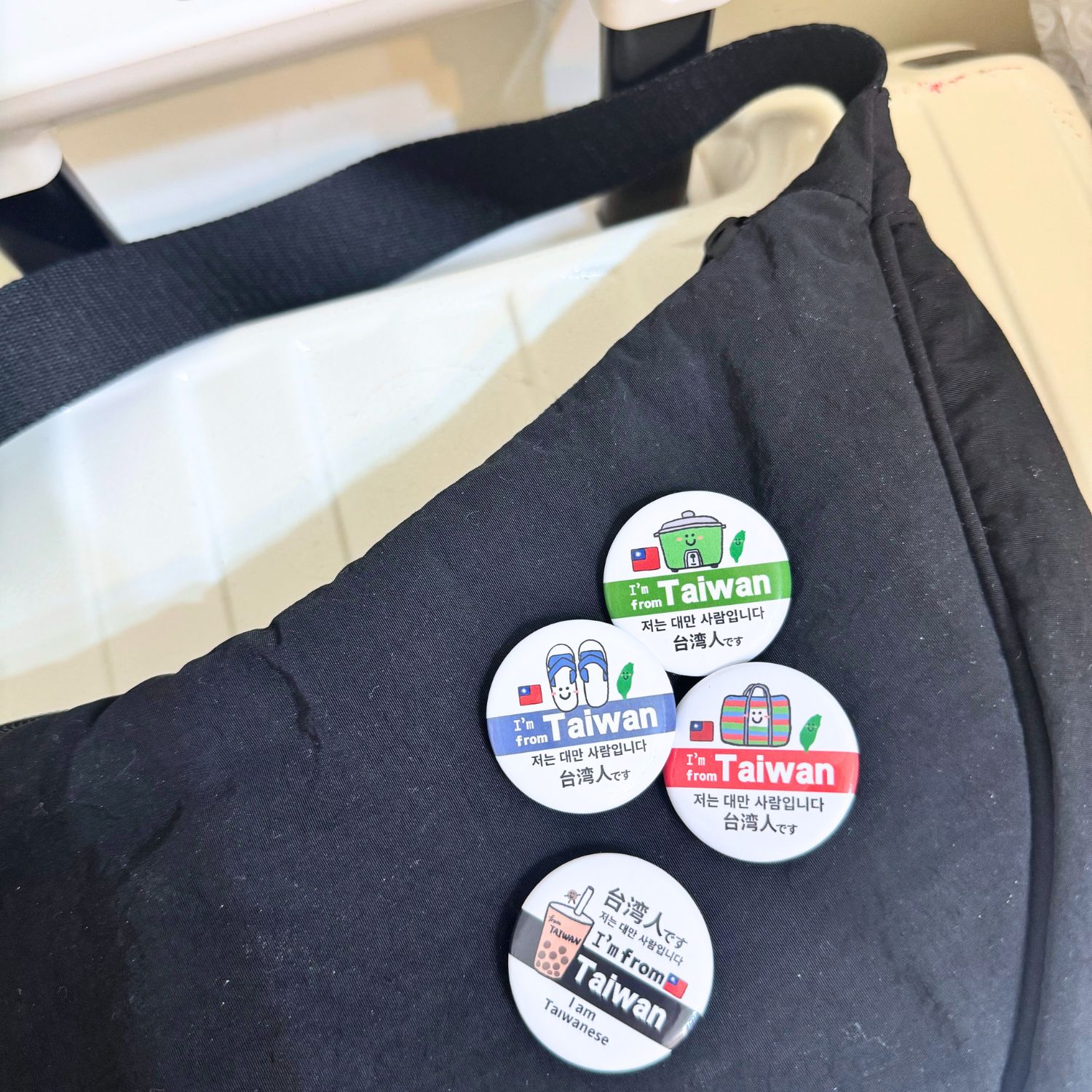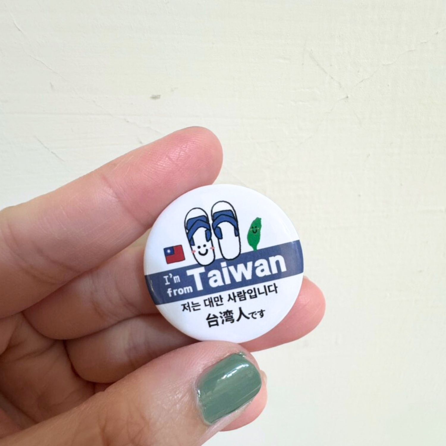 【賣場滿100(不含運)才出貨】胸章皆買1送1同款台灣人防水貼紙(行李箱適用)【亮面小胸章】尺寸:直徑3.2cm設計:Ayuma手繪插畫台灣設計 / 台灣製造